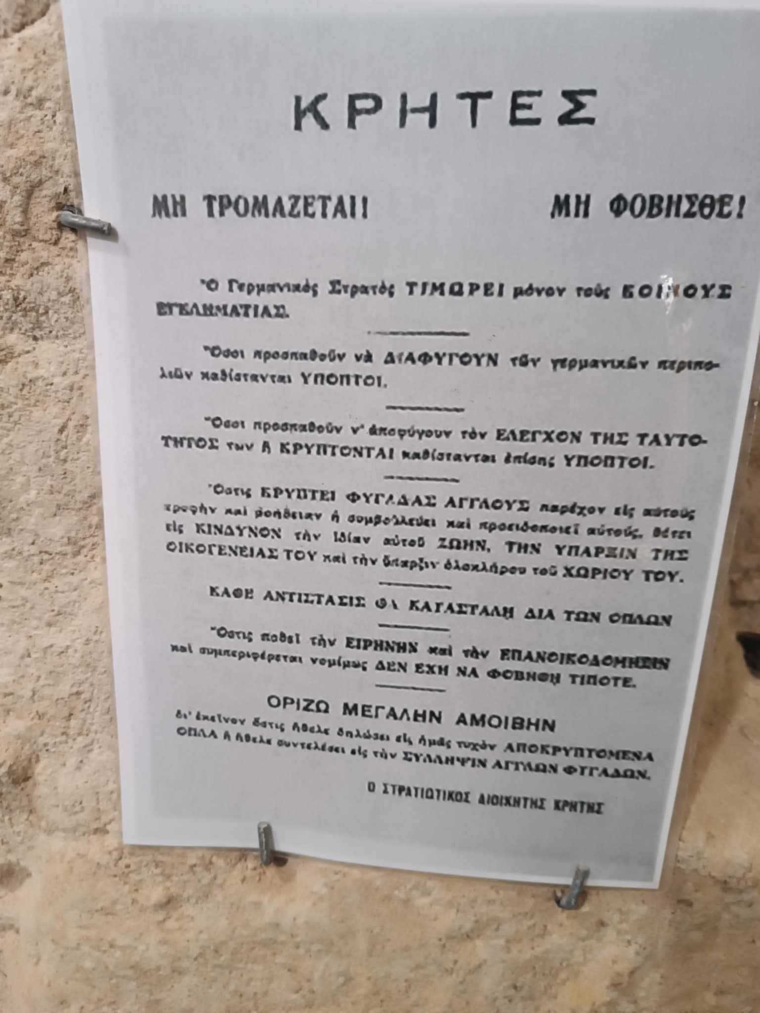 20η Μαΐου 1941, μεσημέρι, τα γερμανικά αεροπλάνα γεμίζουν τον Ρεθεμνιώτικο ουρανό και ξεκινάει η πτώση των αλεξιπτωτιστών. Μάχες σώμα με σώμα, Ρεθεμνιώτες άοπλοι, Γερμανοί οπλισμένοι γερά. Μάχες στην πόλη του Ρεθύμνου, στον Σταυρωμένο, στον Λατζιμά και σε όλη την παραλιακή γραμμή του νομού από το Ατσιπόπουλο έως και το Σφακάκι .